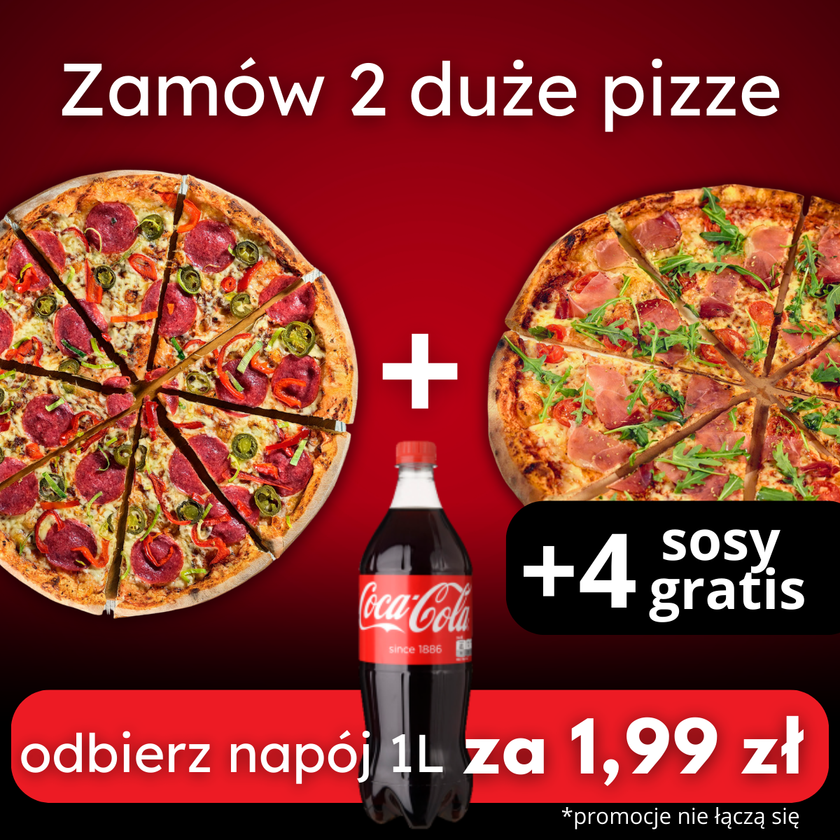 Zamów 2 duże pizze i odbierz napój za 1,99zł